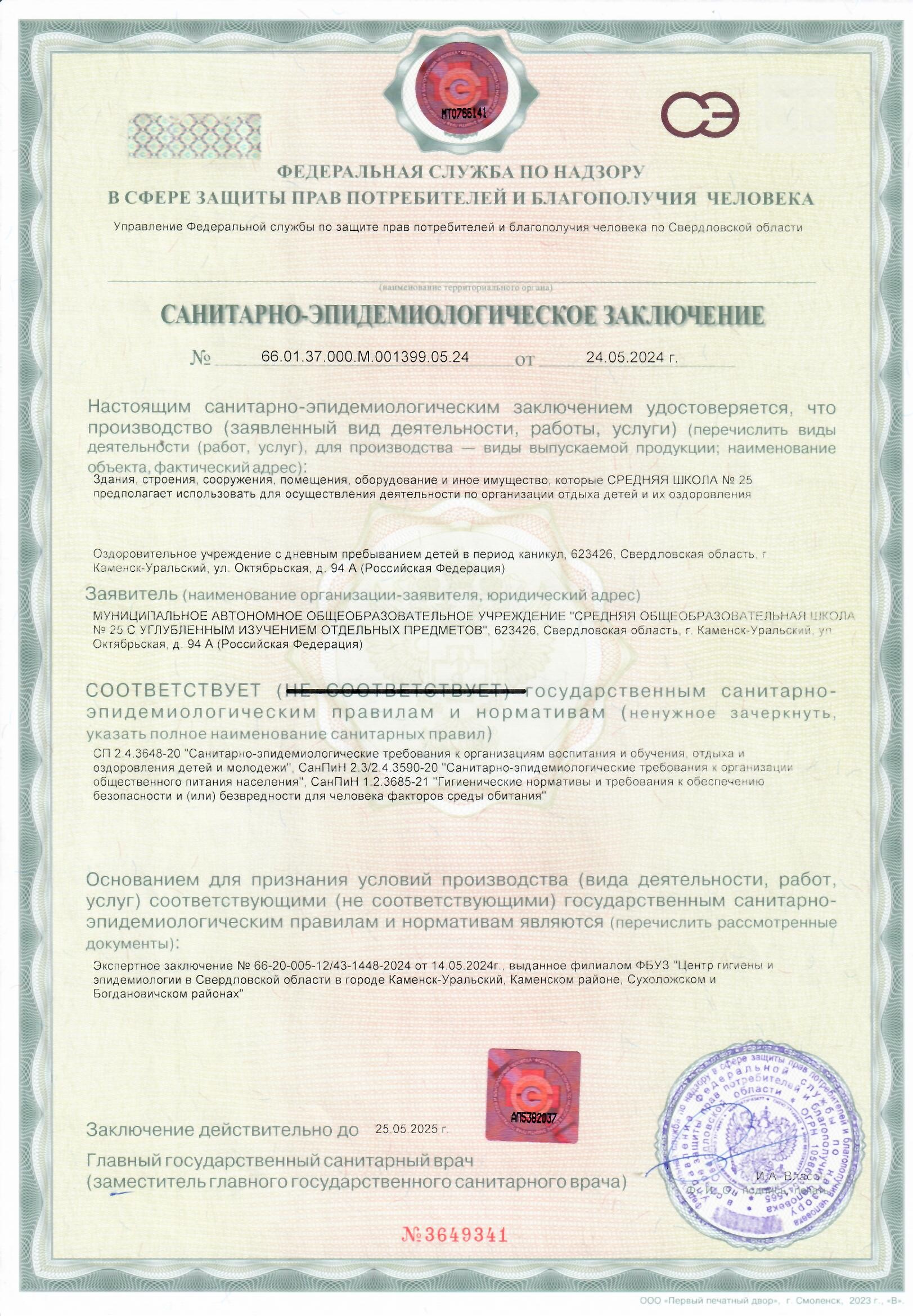 Cанитарно-эпидемиологическое заключение от 24.05.2024